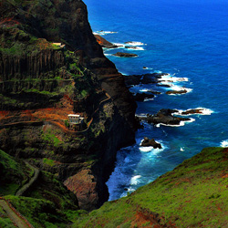Depuis Ponta do Sol, on peut longer la mer en suivant un petit chemin arraché aux falaises, la randonnée est paisible et superbe jusqu'au très coloré et très pittoresque village de Fontainhas, dont les photos commencent à faire le tour du monde, un monde dont il semble marquer la limite, les quelques maisons semblant avoir été construites au-dessus du vide.