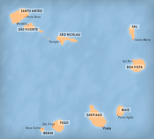 Situé à moins de six heures d'avion de la France, à quelque 450 kilomètres de la côte Ouest africaine, l'archipel du Cap-Vert s'étend sur 4033 km2 et est composé de dix îles principales toutes d'origine volcanique, dont neuf sont habitées, regroupées pour les unes dans les Sotavento au sud (Maio, Santiago, Fogo et Brava) et dans les Barlavento au nord (Santo Antão, São Vicente, Santa Luzia, São Nicolau, Sal et Boa Vista).